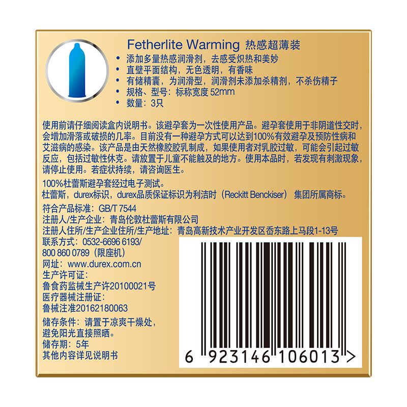 【避孕润滑】杜蕾斯热感超薄3只装